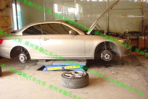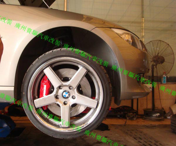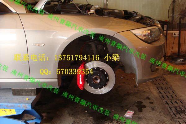 寶馬325i改裝英國原裝進口AP剎車套件!前7040紅色大六活塞,后7609紅色小四活塞!