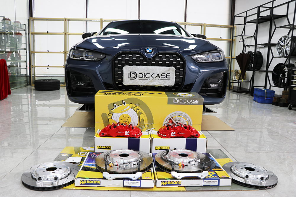 寶馬新款4系剎車升級案例,升級的是AP全原裝套件AP9560大六活塞卡鉗,搭配AP剎車盤,外加dicase后輪加大盤。