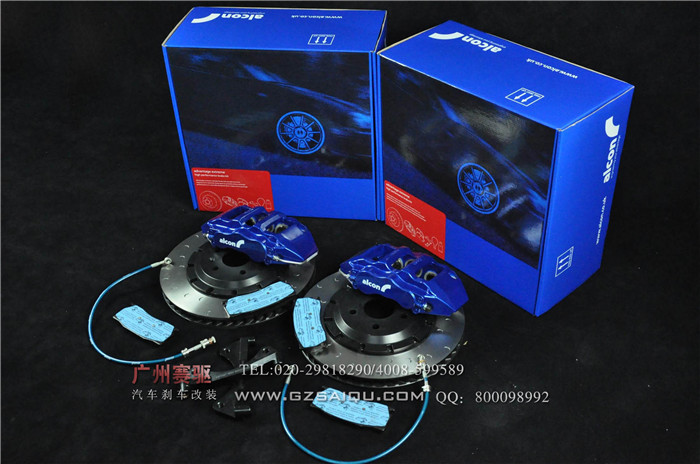 英國ALCON CAR97高性能六活塞競技剎車系統套件包含:ALCON CAR97六活塞競技版剎車卡鉗一對、ALCON原裝剎車盤及合頭各一對、ALCON原裝剎車皮兩對,原裝鋼喉一對、航空鋁材橋馬一對。